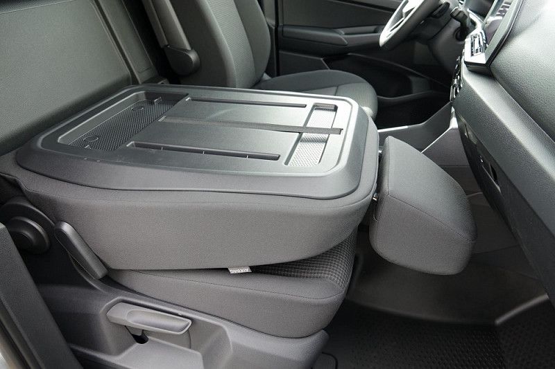 - Komfortpaket: Armlehne für Fahrerseitz. Backpanel an der Rückenlehne des Beifahrersitzes (vom Fahrer bedienbar). Betriebsspannung 12 V mit 230 V Steckdose (Schuko-Steckdose). Dachgalerie im Fahrerhaus (Ablageschale am Dachhimmel mit 2 Dachhaltegriffen im Fahrerhaus). Handschuhfach mit abschließbarer Klappe, beleuchtet. Höheneinstellung für beide Vordersitze, manuell. Klimaanlage mit manueller Regelung. LED-Innenraumbeleuchtung im Laderaum, 2 LED-Spotleuchten. Lehnenentriegelung für rechten Vordersitz (Wert: 2.082,50 EUR)