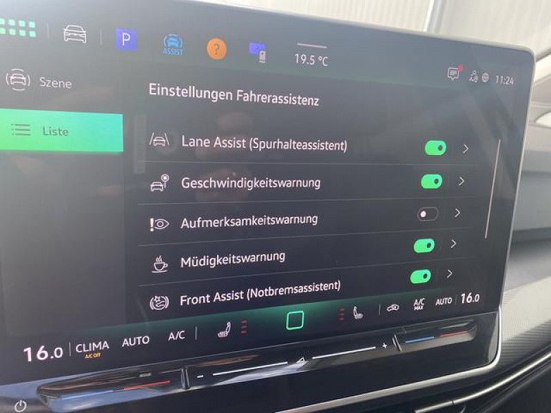 - Innen: Isofix-Aufnahmen für Kindersitz an Beifahrersitz und Rücksitze außen (inkl. i-Size-Kindersitze) Klimaanlage Air Care Climatronic 3-Zonen inkl. Fondbedienung und Aktiv-Kombi-Filter Lenkrad (Leder) mit Multifunktion Mittelarmlehne vorn höhen-/längsverstellbar Rücksitzlehne geteilt mit Mittelarmlehne Sitz vorn links ErgoActive (elektr. verstellbar, Memory, Oberschenkelauflage verschiebbar) Sitze: Sport-Komfortsitze vorn Infotainment & Kommunikation: Mobiltelefon Schnittstelle mit kabelloser Ladefunktion Multimedia-Schnittstelle 2 x USB (Typ C) vorn und 2 x USB-Ladeanschluß (Typ C) Mittelkonsole hinten (45 W) Notrufsystem Sicherheit & Assistenz: Abbiege- und Allwetterlicht / Schlechtwetter-Licht Airbag Fahrer-/Beifahrerseite, Beifahrerairbag abschaltbar Automatische Fahrlichtschaltung mit Leaving Home / Coming-Home-Lichtfunktion, Tagfahrlicht LED Einparkhilfe vorn und hinten Fahrassistenz-System: Ablenkungs- und Müdigkeitserkennung Automatische Distanzregelung (ACC) Fahrassistenz-System: Spurhalteassistent (Lane Assist) Fahrassistenz-System: Spurwechselassistent (Side Assist) mit Auspark-Assistent und Ausstiegswarnung Fahrassistenz-System: Umfeldbeobachtungssystem (Front assist) mit City-Notbremsfunktion Fahrassistenz-System: Verkehrszeichenerkennung Geschwindigkeitsbegrenzer mit vorausschauender Geschw.-Regelung Heckleuchten LED Rückfahrkamera (Rear View) Scheinwerfer LED Plus Seitenairbag vorn mit Center-Airbag, Kopf-Airbag-Einheit vorn und hinten Sicherheitsgurte hinten außen mit Gurtstraffer Emotion Paket Wegfahrsperre (elektronisch) Zentralverriegelung Außen: Außenspiegel elektr. verstell-, heiz- und anklappbar mit Spiegelabsenkung rechts, Memory Dachreling schwarz Frontscheibe Verbundglas, wärme- und geräuschdämmend Wärmeschutzverglasung grün getönt (seitlich / hinten) Räder & Technik: Anti-Blockier-System (ABS) Elektron. Differentialsperre (XDS) Elektron. Stabilitäts-Programm (ESP) mit Bremskraftverstärker elektro-mechanisch Otto-Partikelfilter (OPF) Reifenkontroll-Anzeige Servolenkung elektro-mechanisch und geschwindigkeitsabhängig Sonstiges: Ambiente-Beleuchtung (30 Farben) App-Connect Wireless (Apple CarPlay, Android Auto) Audiosystem: Vorbereitung für spätere Freischaltung Navigationsfunktion Ausstattung Style Außenspiegel mit Umfeldleuchte und Projektionsfunktion Außenspiegel und Türgriffe außen in Wagenfarbe Bordwerkzeug Chromeinfassung Fensterheberschalter / Spiegelverstellung / Ausströmer Chromleisten an Seitenfenstern Diebstahlsicherung für Räder (Felgenschlösser) Digital Cockpit PRO (Instrumentenanzeige digital) Fahrassistenz-System: Abbiegebremsfunktion und Ausweichunterstützung Fußgänger-Schutzmaßnahmen erweitert Fußmatten Textil Fußraumbeleuchtung vorn LED (Farbe einstellbar) Infotainment-System mit Touchscreen-Farbdisplay 12,9 Zoll Innenausstattung: Dekoreinlagen Style Keyless-Start ohne Safesicherung Kopfstützen hinten (3-fach) Lautsprecher (6+1) Lendenwirbelstützen vorn, links elektr. verstellbar und Massagefunktion Leseleuchten vorn und hinten LED Leuchtweitenregelung automatisch Mobile Online Dienste Vorbereitung We Connect und We Connect Plus Modellpflege Nichtraucher-Paket Parkbremse elektrisch mit Auto-Hold-Funktion Radioempfang digital (DAB+) Reifen-Reparaturkit (Tire Mobility Set) Schadstoffarm nach Abgasnorm Euro 6e Schalt-/Wählhebelgriff Leder Sitzbezug / Polsterung: Mikrovlies ArtVelours Eco Sonnenblenden mit Spiegel (beleuchtet) Sprachverstärkung elektronisch (Kommunikation innen) Steckdose 12V im Koffer-/Laderaum Stoßfänger Wagenfarbe, Lufteinlass mit Chromleiste Verbandkasten, Warndreieck und Warnweste(n) Vorbereitung für Alkohol-Wegfahrsperre (Alcolock) Vorbereitung für spätere Freischaltung - Fernlichtassistent Light Assist VW Logo vorn, Leiste zwischen Scheinwerfer und Türgriffmulden außen beleuchtet Warnanlage für Sicherheitsgurte vorn und hinten