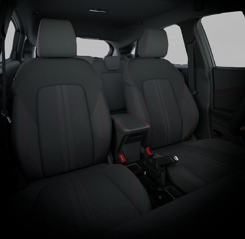 - Schwarzer Stoffbezug mit roter Naht