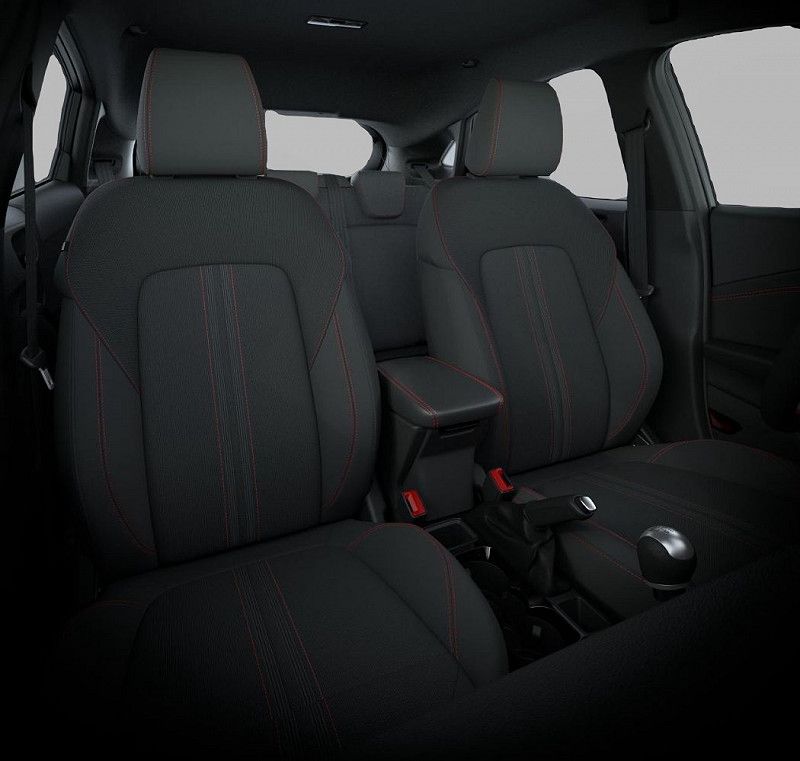 - Schwarzer Stoffbezug mit roter Naht