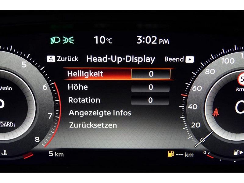 - Nissan Fahrerassistenzsysteme: Intelligenter Adaptiver Geschwindigkeits- und Abstands-Assistent. Intelligenter Autonomer Notbrems-Assistent hinten für feststehende und sich langsam bewegende Objekte. Intelligenter Autonomer Notbrems-Assistent vorne mit Fußgänger- und Radfahrererkennung und Kreuzungs-Assistent. Intelligenter Frontkollisionswarnungs-Assistent. Intelligente Müdigkeitserkennung. Intelligenter Spurhalte-Assistent aktiv mit korrigierendem Bremseingriff. Querverkehrswarner hinten. Totwinkel-Assistent aktiv mit korrigierendem Bremseingriff. Verkehrszeichenerkennung mit Geschwindigkeitsanpassung.